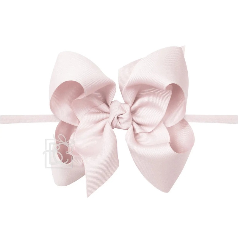 PowderPink1/4 Pantyhose Headband with Signature Grosgrain Bow- Huge Bow